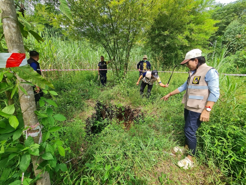 วันที่ 1 ตุลาคม 2568 เวลา 13.30 น. องค์การบริหารส่วนตำบลด่านช้าง นำโดยนางสาวนันทนา นาคำ นายกองค์การบริหารส่วนตำบลด่านช้าง พร้อมด้วยนายอุทัย จันทะลุน รองนายกองค์การบริหารส่วนตำบลด่านช้าง ว่าที่ร้อยตรีสุทัศน์ ทานุมา ปลัดองค์การบริหารส่วนตำบลด่านช้าง งานป้องกันและบรรเทาสาธารณภัย ร่วมกับผู้นำชุมชนหมู่ที่ 1 ลงพื้นที่ตรวจสอบเหตุหลุมยุบ พร้อมกั้นแนวเขตพื้นที่อันตรายเพื่อประสานหน่วยงานที่เกี่ยวข้องดำเนินการแก้ไขต่อไป ณ หมู่ที่ 1 ตำบลด่านช้าง