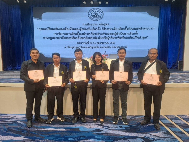 วันที่ 30 - 31 ตุลาคม 2568 นางสาวนันทนา นาคำ นายกองค์การบริหารส่วนตำบลด่านช้าง พร้อมด้วยคณะผู้บริหาร สมาชิกสภา เข้าร่วมอบรมหลักสูตร “คุณสมบัติและลักษณะต้องห้ามของผู้สมัครรับเลือกตั้ง วิธีการหาเสียงเลือกตั้งก่อนและหลังครบวาระ การจัดการการเลือกตั้งองค์การบริหารส่วนตำบลของผู้ดำเนินการเลือกตั้งตามกฎหมายว่าด้วยการเลือกตั้งสมาชิกสภาท้องถิ่นหรือผู้บริหารท้องถิ่น (ฉบับแก้ไขล่าสุด)” ณ โรงแรมเจริญโฮเต็ล อำเภอเมือง จังหวัดอุดรธานี