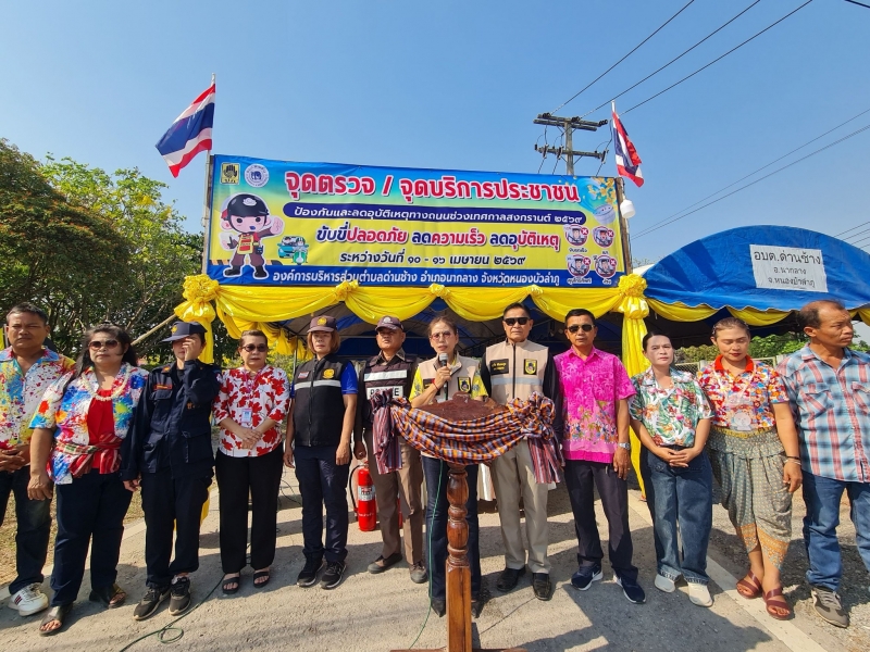 วันที่ 10 เมษายน 2569 เวลา 09.00 น. องค์การบริหารส่วนตำบลด่านช้าง จัดโครงการจุดตรวจ/จุดบริการประชาชนป้องกันและลดอุบัติเหตุทางถนนช่วงเทศกาลสงกรานต์ 2569 โดยนางสาวนันทนา นาคำ นายกองค์การบริหารส่วนตำบลด่านช้าง ได้เป็นประธานในการเปิดศูนย์ ฯ ประจำจุดบริการประชาชน โดยมีคณะผู้บริหาร หัวหน้าส่วนราชการ สมาชิกสภา กำนัน ผู้ใหญ่บ้าน ตำรวจ รพ.สต. สมาชิก อปพร.ในพื้นที่ตำบลด่านช้าง ร่วมเปิดศูนย์ ฯ ณ หน้าสำนักงานองค์การบริหารส่วนตำบลด่านช้าง อำเภอนากลาง จังหวัดหนองบัวลำภู