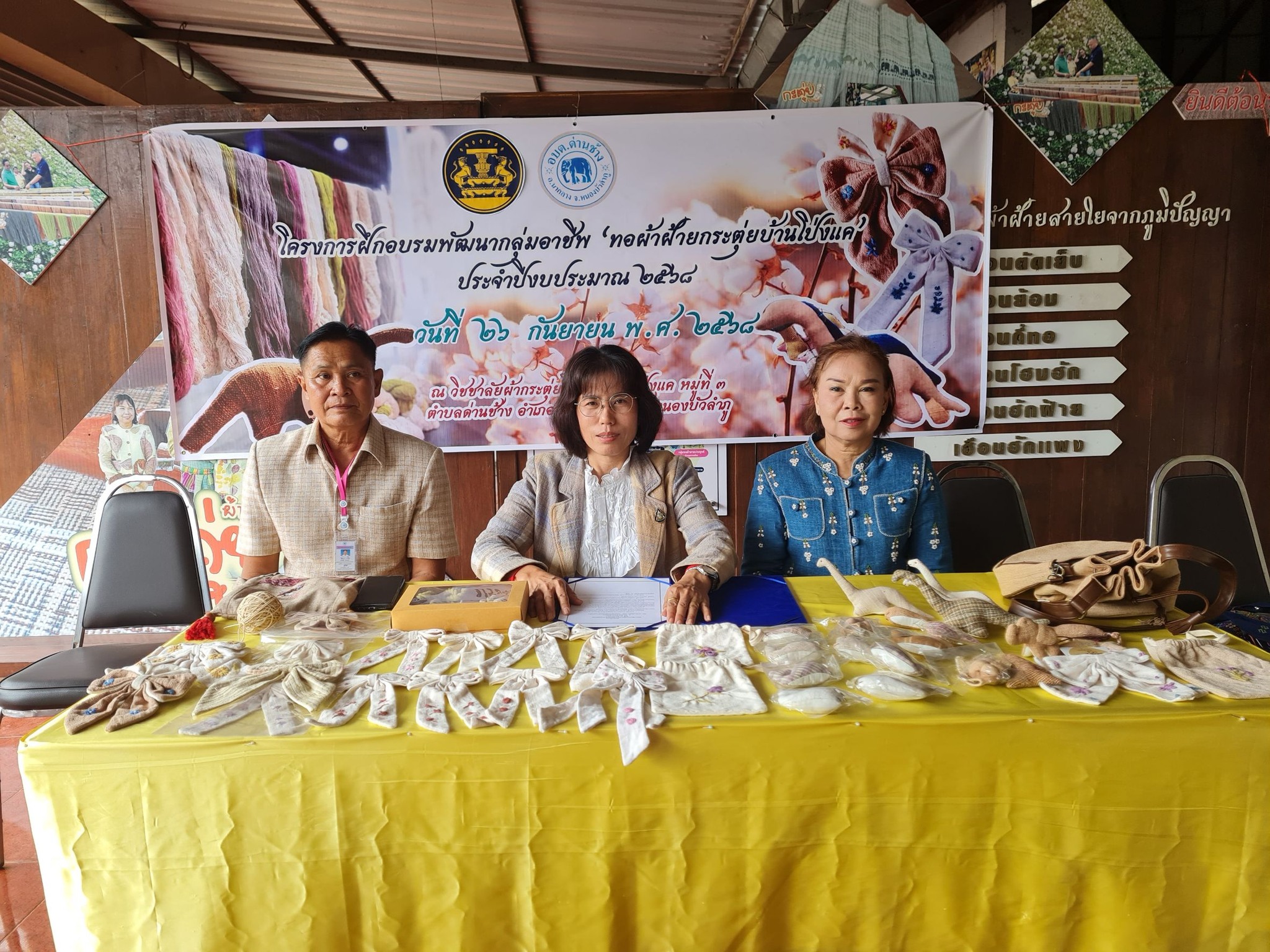 วันที่ 26 กันยายน 2568 องค์การบริหารส่วนตำบลด่านช้าง นำโดย นางสาวนันทนา นาคำ นายกองค์การบริหารส่วนตำบลด่านช้าง พร้อมด้วยคณะผู้บริหาร พนักงานเจ้าหน้าที่งานพัฒนาชุมชน จัดโครงการฝึกอบรมพัฒนากลุ่มอาชีพ"ทอผ้าฝ้ายกระตุ่ยบ้านโป่งแค" ประจำปีงบประมาณ 2568 ณ วิชชาลัยผ้ากระตุ่ยบ้านโป่งแค ซึ่งเป็นงบประมาณที่ได้รับรางวัลองค์กรปกครองส่วนท้องถิ่นที่มีการบริหารจัดการที่ดี ประจำปีงบประมาณ 2567 ของคณะกรรมการกระจายอำนาจให้แก่องค์กรปกครองส่วนท้องถิ่นจากสำนักงานปลัดสำนักนายกรัฐมนตรี