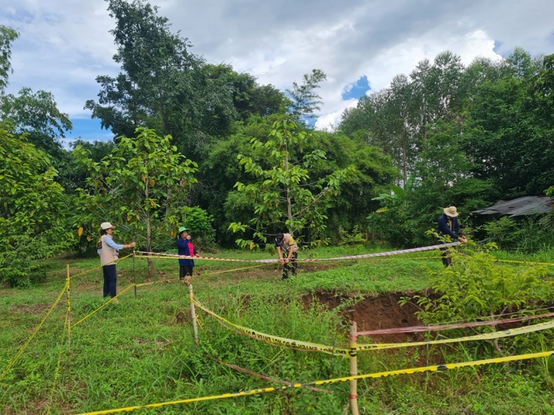 วันที่ 1 ตุลาคม 2568 เวลา 13.30 น. องค์การบริหารส่วนตำบลด่านช้าง นำโดยนางสาวนันทนา นาคำ นายกองค์การบริหารส่วนตำบลด่านช้าง พร้อมด้วยนายอุทัย จันทะลุน รองนายกองค์การบริหารส่วนตำบลด่านช้าง ว่าที่ร้อยตรีสุทัศน์ ทานุมา ปลัดองค์การบริหารส่วนตำบลด่านช้าง งานป้องกันและบรรเทาสาธารณภัย ร่วมกับผู้นำชุมชนหมู่ที่ 1 ลงพื้นที่ตรวจสอบเหตุหลุมยุบ พร้อมกั้นแนวเขตพื้นที่อันตรายเพื่อประสานหน่วยงานที่เกี่ยวข้องดำเนินการแก้ไขต่อไป ณ หมู่ที่ 1 ตำบลด่านช้าง