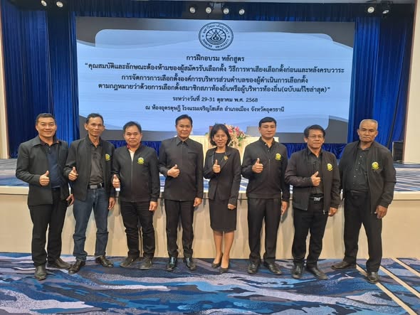 วันที่ 30 - 31 ตุลาคม 2568 นางสาวนันทนา นาคำ นายกองค์การบริหารส่วนตำบลด่านช้าง พร้อมด้วยคณะผู้บริหาร สมาชิกสภา เข้าร่วมอบรมหลักสูตร “คุณสมบัติและลักษณะต้องห้ามของผู้สมัครรับเลือกตั้ง วิธีการหาเสียงเลือกตั้งก่อนและหลังครบวาระ การจัดการการเลือกตั้งองค์การบริหารส่วนตำบลของผู้ดำเนินการเลือกตั้งตามกฎหมายว่าด้วยการเลือกตั้งสมาชิกสภาท้องถิ่นหรือผู้บริหารท้องถิ่น (ฉบับแก้ไขล่าสุด)” ณ โรงแรมเจริญโฮเต็ล อำเภอเมือง จังหวัดอุดรธานี