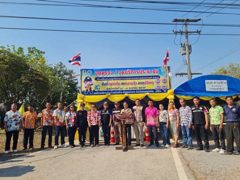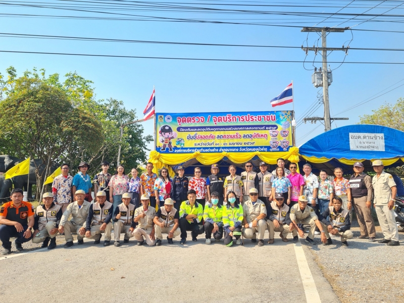 วันที่ 10 เมษายน 2569 เวลา 09.00 น. องค์การบริหารส่วนตำบลด่านช้าง จัดโครงการจุดตรวจ/จุดบริการประชาชนป้องกันและลดอุบัติเหตุทางถนนช่วงเทศกาลสงกรานต์ 2569 โดยนางสาวนันทนา นาคำ นายกองค์การบริหารส่วนตำบลด่านช้าง ได้เป็นประธานในการเปิดศูนย์ ฯ ประจำจุดบริการประชาชน โดยมีคณะผู้บริหาร หัวหน้าส่วนราชการ สมาชิกสภา กำนัน ผู้ใหญ่บ้าน ตำรวจ รพ.สต. สมาชิก อปพร.ในพื้นที่ตำบลด่านช้าง ร่วมเปิดศูนย์ ฯ ณ หน้าสำนักงานองค์การบริหารส่วนตำบลด่านช้าง อำเภอนากลาง จังหวัดหนองบัวลำภู