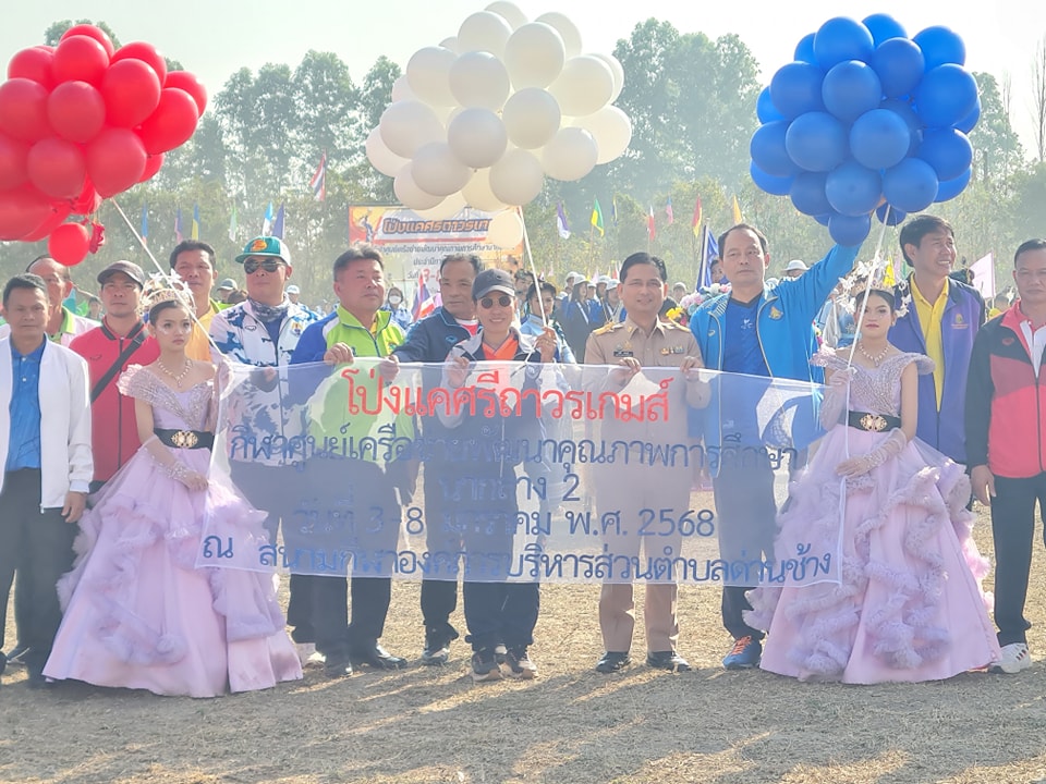 วันที่ 6 - 8 มกราคม 2568 องค์การบริหารส่วนตำบลด่านช้าง นำโดยนางสาวนันทนา นาคำ นายกองค์การบริหารส่วนตำบลด่านช้าง ร่วมกับ โรงเรียนโป่งแคศรีถาวร นำโดย นางรุจิรา ลายเมฆ ผู้อำนวยการโรงเรียนโป่งแคศรีถาวร ร่วมเป็นเจ้าภาพในการจัดกีฬาแข่งขันกีฬา "โป่งแคศรีถาวรเกมส์" กีฬาศูนย์เครือข่ายพัฒนาคุณภาพการศึกษา นากลาง 2 ประจำปีการศึกษา 2568 ณ สนามกีฬากลางอำเภอนากลางตำบลด่านช้าง